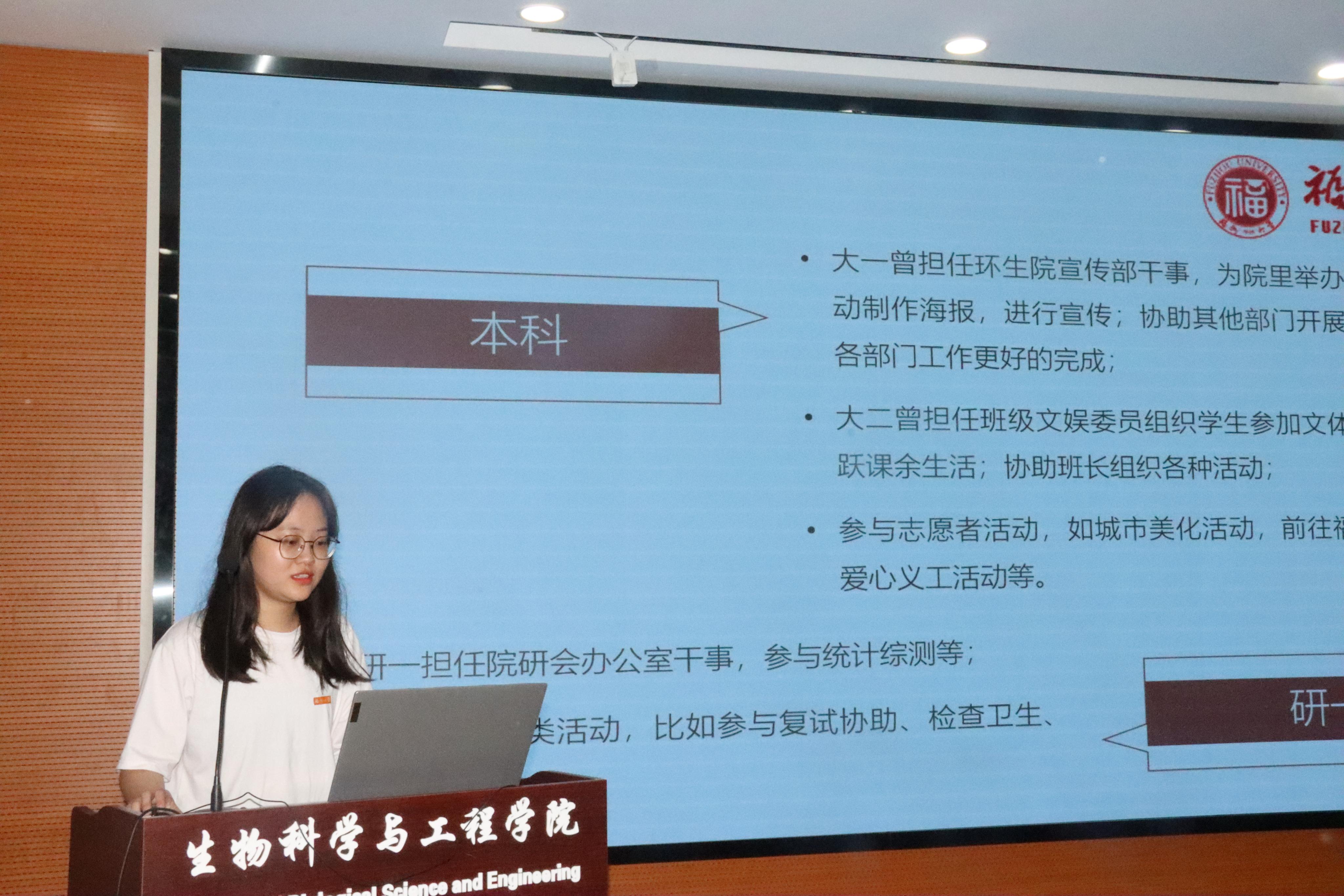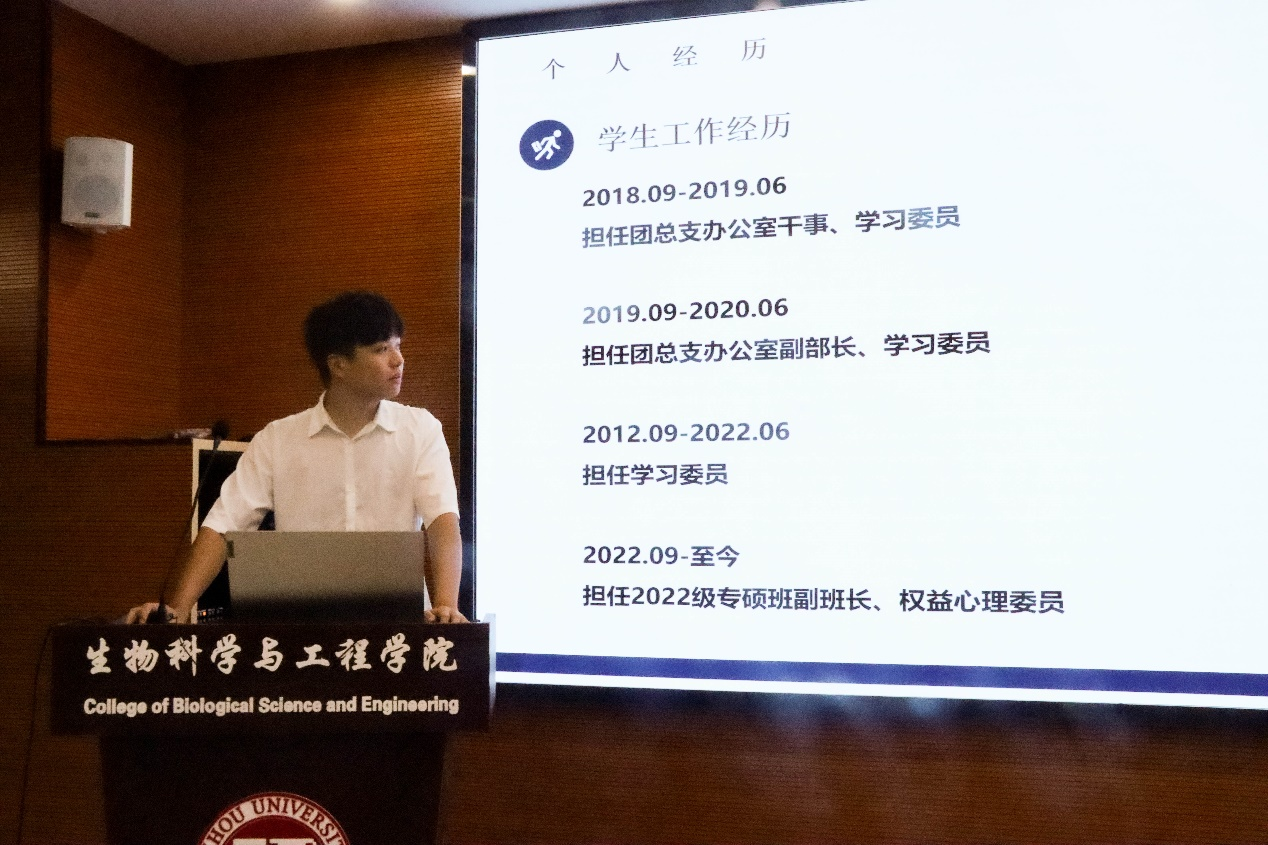 学生会、研究生会主席团候选人依次进行竞选演讲,从学生工作经历、个人优势分析、未来工作规划等方面进行陈述。