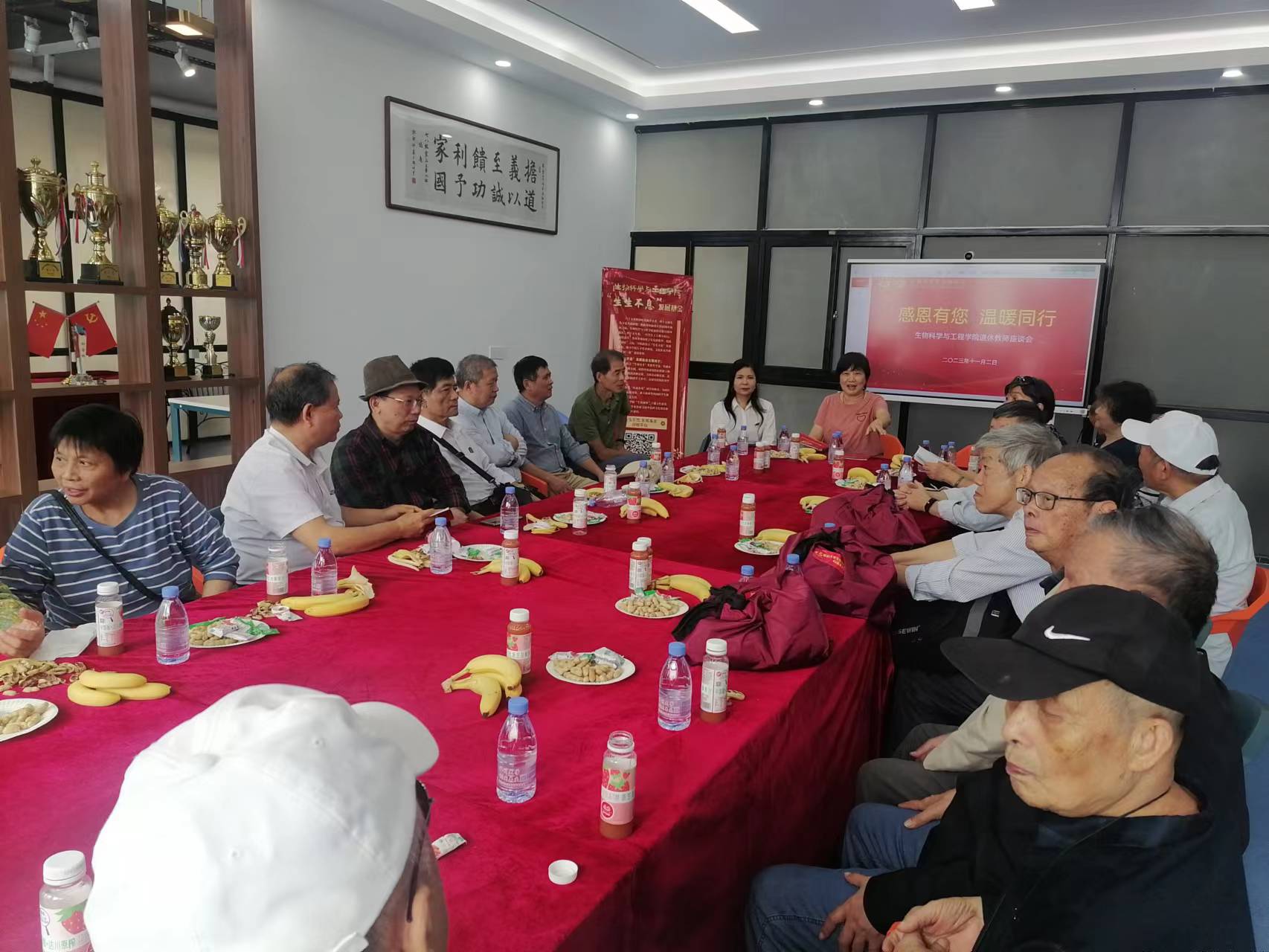 回到校区,退休老教师们参加了学院组织的以校庆暨院庆为主题的欢迎座谈会,学院党政班子成员参加了座谈交流,表示学院45年的发展历程,离不开老同志们的努力奋斗,感谢老同志们的辛勤奉献!学院为大家准备了院庆纪念品,共享浓厚的校庆、院庆氛围,也带去学院对退休老教师的深切关怀。