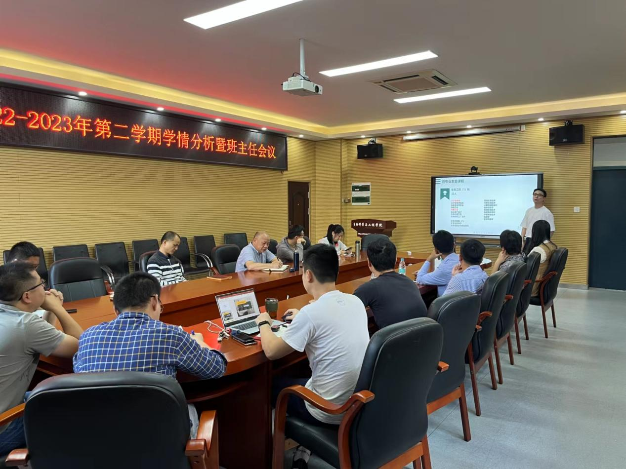 2022-2023学年第二学期学情分析暨班主任工作会议在嘉锡楼225会议室召开。会议由院党委曹仁秋副书记主持,王航副院长、各班班主任及各年级辅导员参加会议。