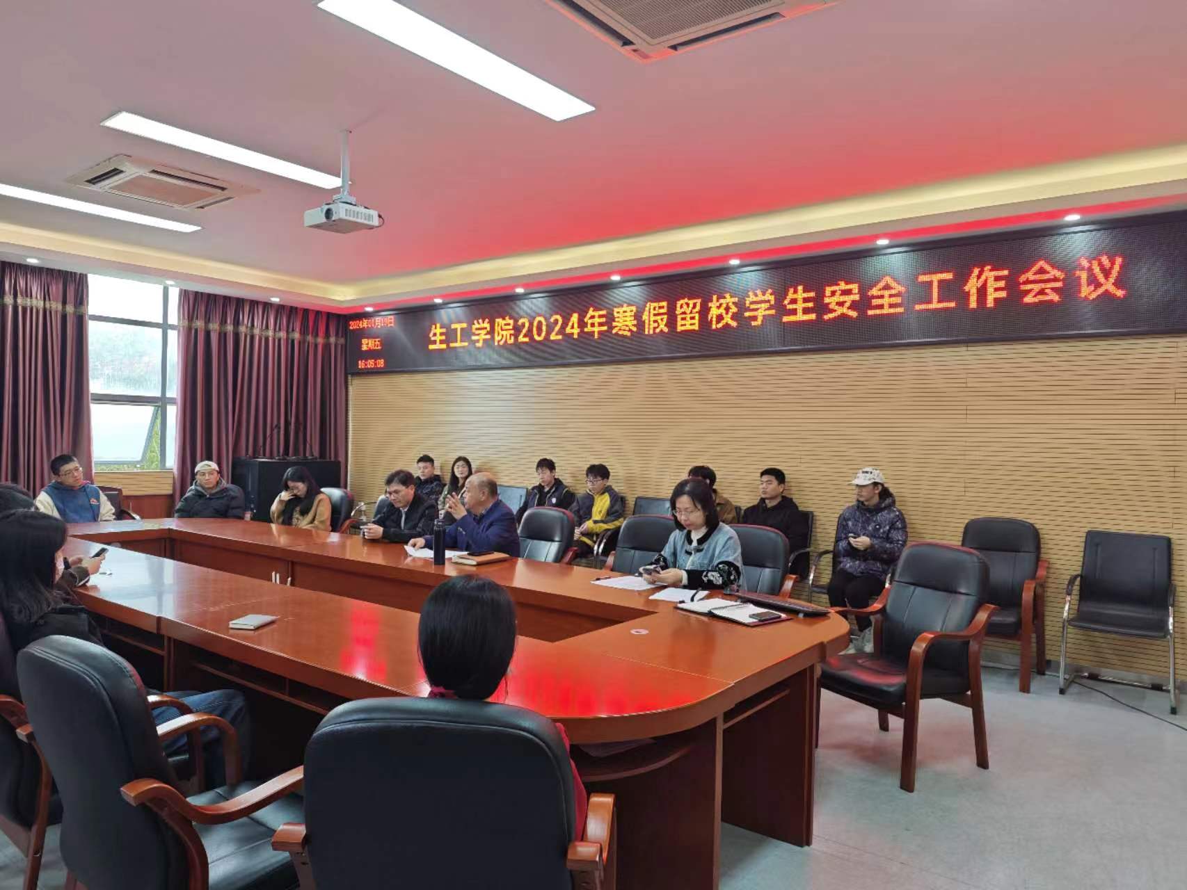 在嘉锡楼225会议室召开寒假留校学生安全管理工作会议,院党委曹仁秋副书记、实验中心李仁宽老师、辅导员林婧烨、张凌拓老师以及学院本科生各年级、研究生各所、团队留校学生负责人参加安全管理工作会议。