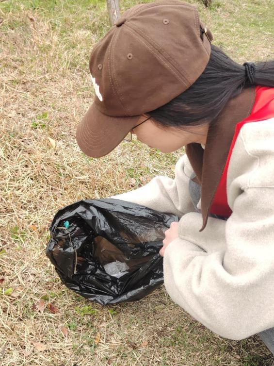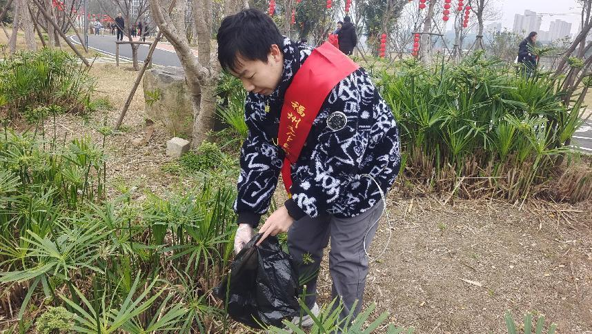 青协于3月9日在旗山湖公园开展了“沉浸式徒步拾荒”志愿服务活动。
