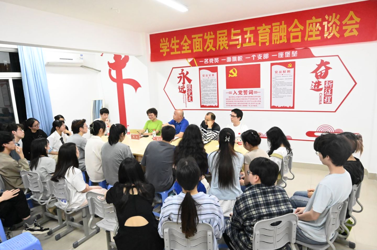 在旗山校区9号楼3楼一站式社区服务中心召开“学生全面发展与五育融合”专题座谈会。院党委副书记曹仁秋,副院长王航、院团委书记张晶、生工系主任张龙斌及2020级、2021级、2022级学生代表参加座谈。