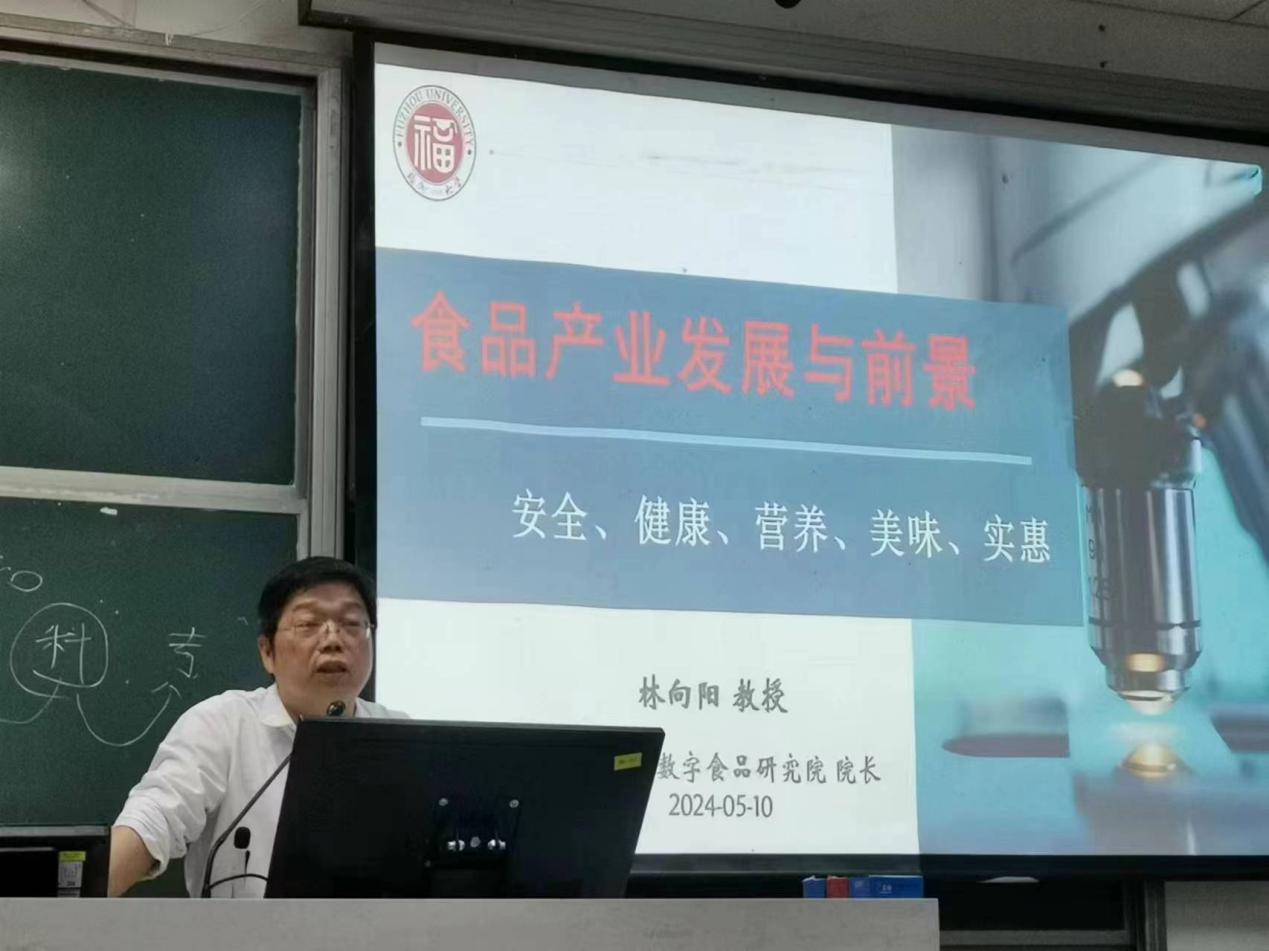 林向阳教授以其深厚的学术造诣和丰富的行业经验,以 “食品专业发展与前景”为主题,为在场的学子们描绘了食品科学与工程专业的广阔天地。他指出,随着科技的进步,食品加工技术正朝着更加精细化、智能化的方向发展,同时随着人们健康意识的增强和社会老龄化的趋势,健康食品和老年食品的需求日益增加,发展前景广阔,这对专业人才提出了更高的要求,也提供了更广阔的平台和机会。面对食品行业未来发展的机遇与挑战,林向阳教授叮嘱同学们,要对食品行业的发展满怀信心,保持食品科学知识学习的专心,坚定综合系统全面学习的恒心。