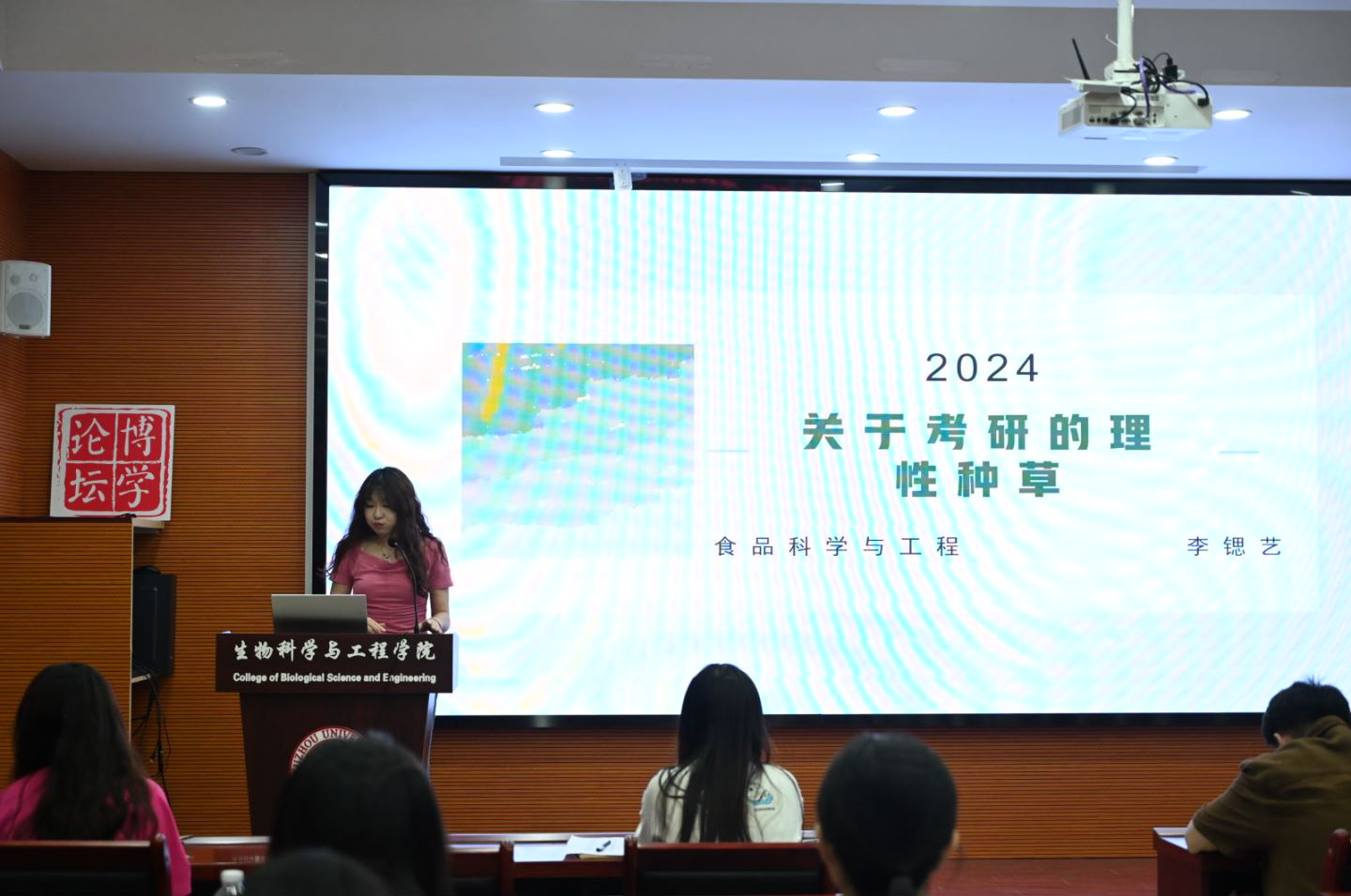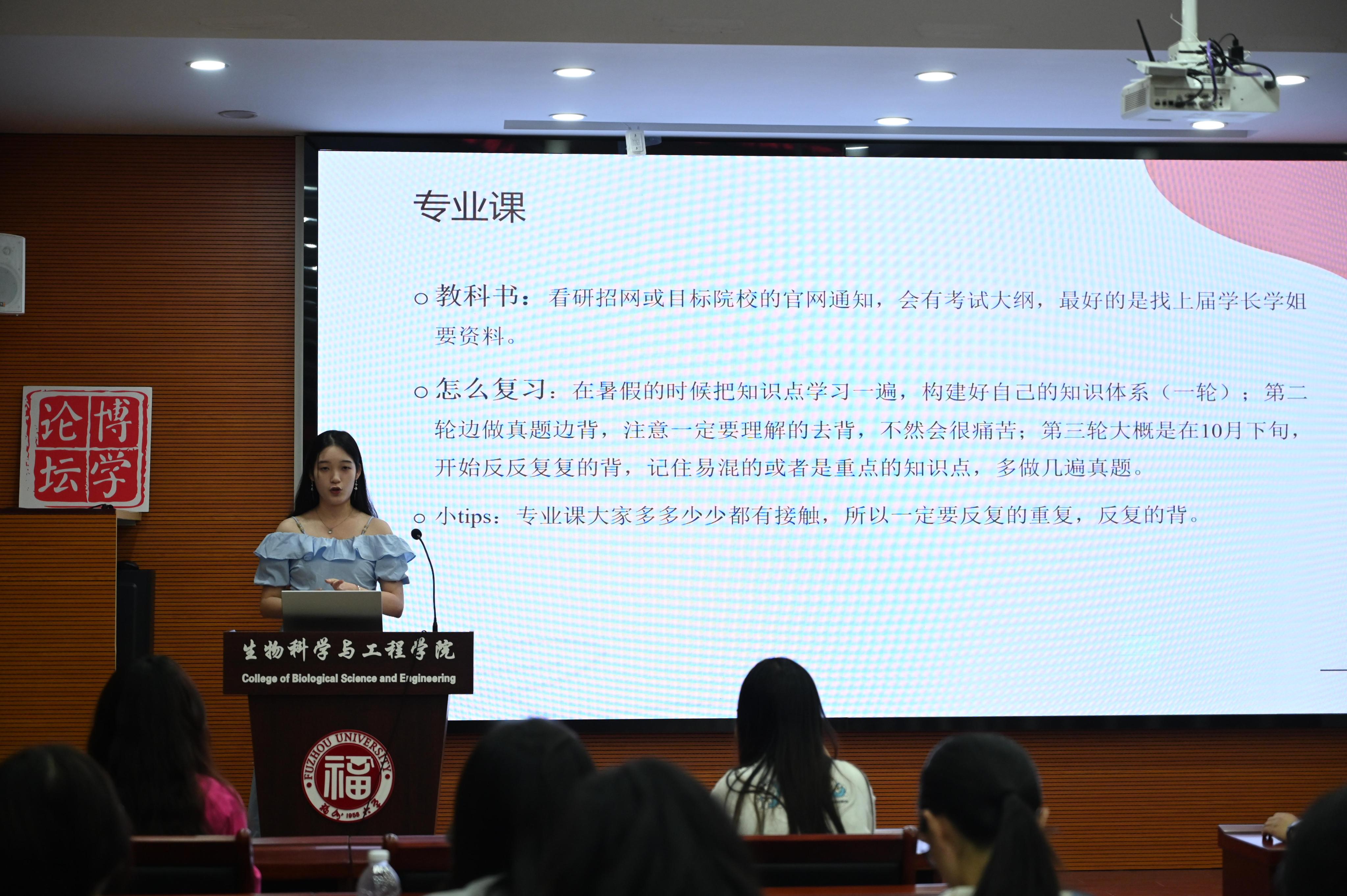在生工北楼柏物产厅举行“研”途有你,逐梦前行——考研经验分享会,本次分享会特邀4位2020级考研上岸的优秀学长学姐作为主讲人,分享相关备考经验。