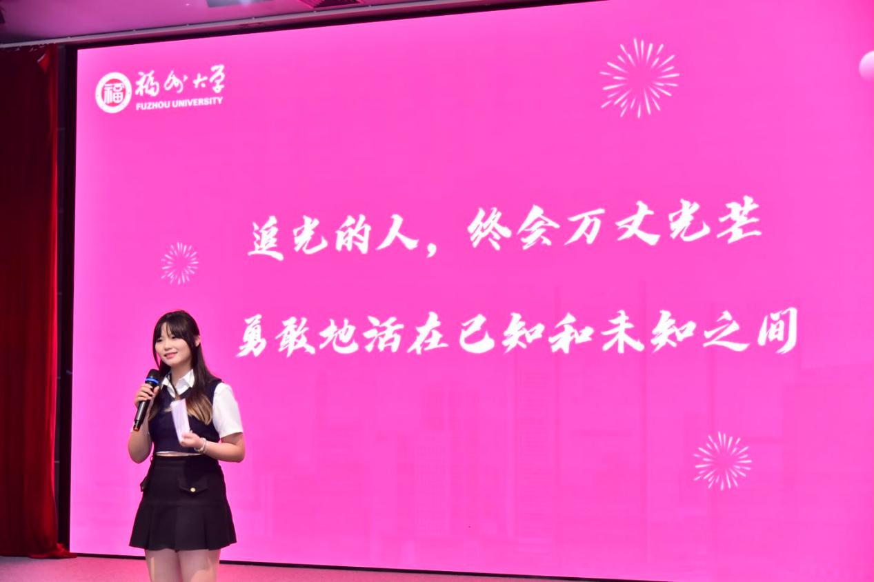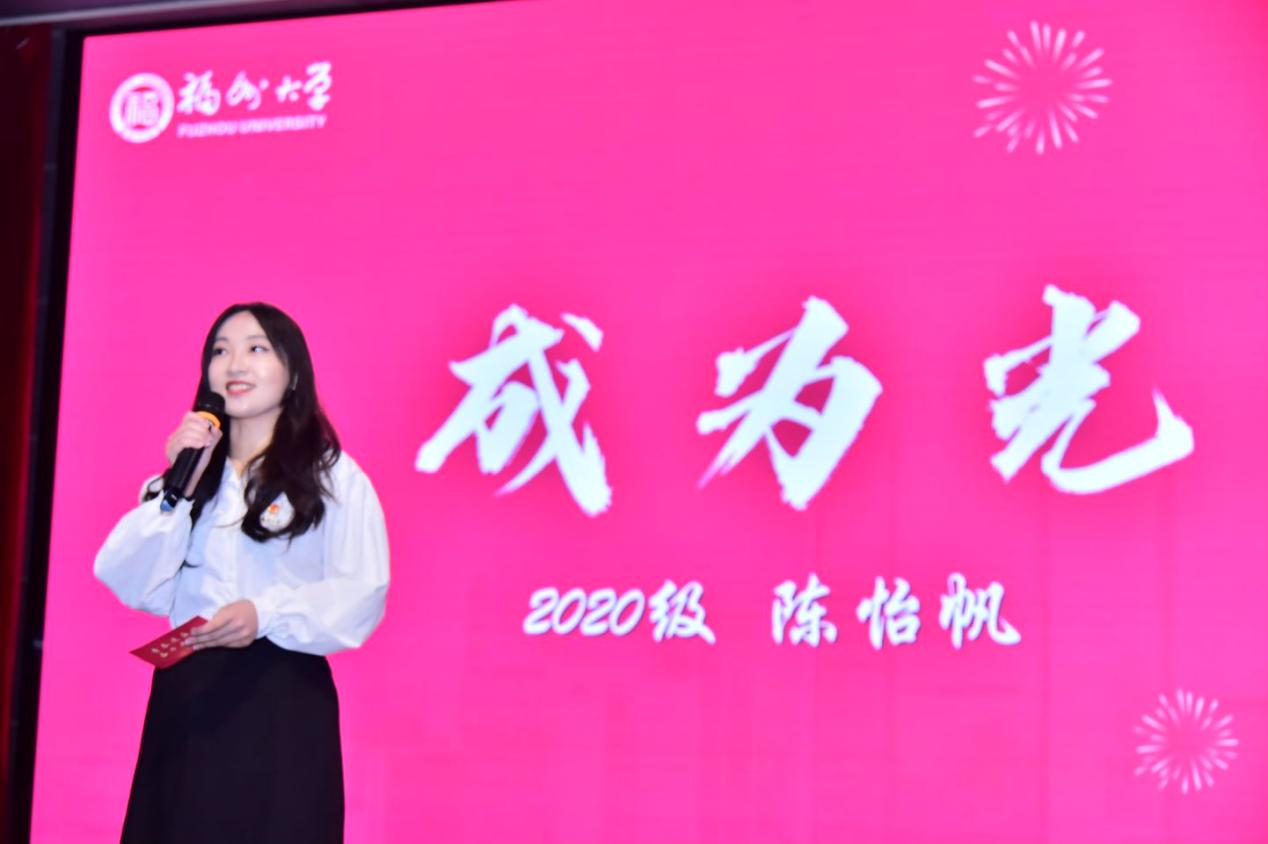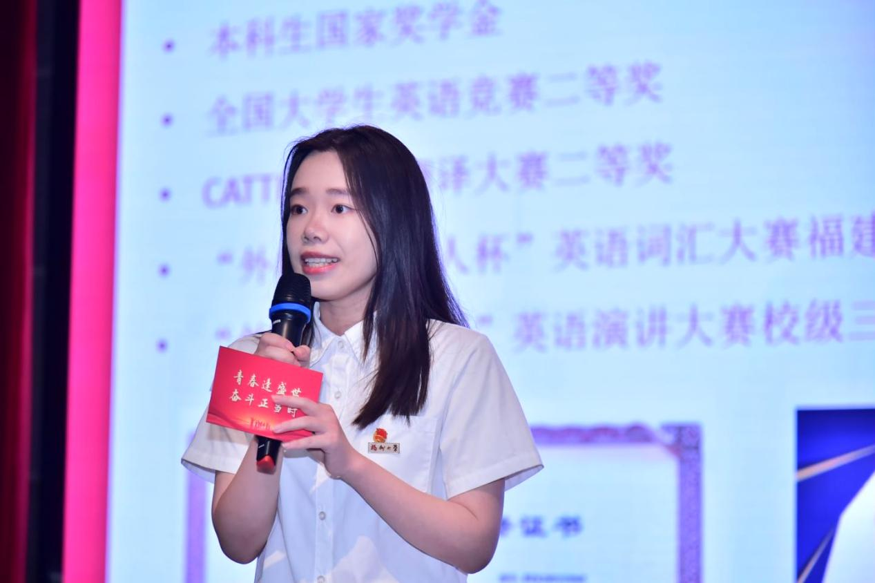 2021级本科生代表林燕纯同学的关键词是“相信光”,通过在基层团组织工作的锻炼,她践行了“无奋斗,不青春”的铮铮誓言;2022级本科生代表刘津津和陆龙郡同学的关键词是“追随光”,他们分别讲述了各自在艺术和体育赛道上挥洒热血,追逐梦想的故事;2020级本科生代表林颖和陈怡帆同学的关键词是“成为光”,她们分享了四年来不断打破舒适圈,突破自我、超越自我的故事,并以此为例表达了对学弟学妹们的鼓励与支持。