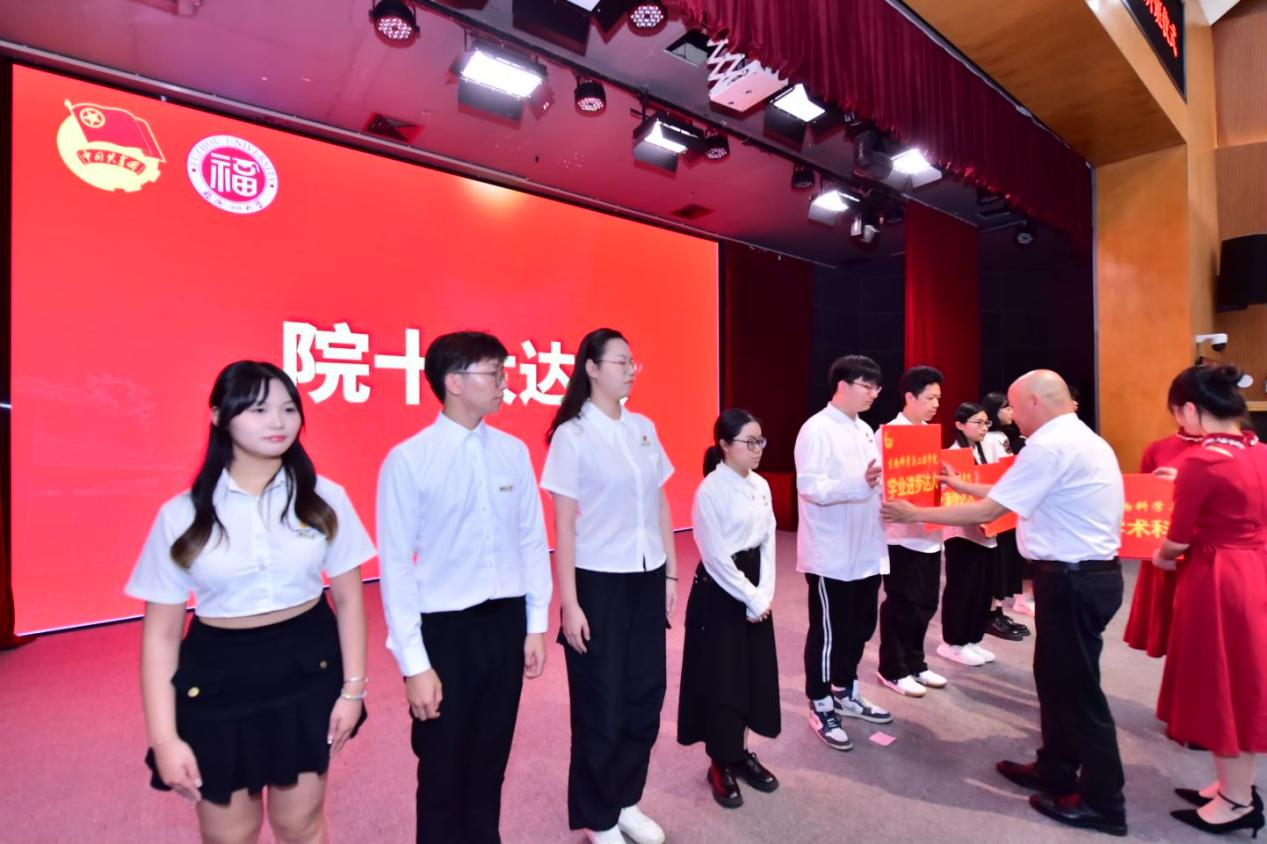 纪念表彰大会在庄严的国歌声中拉开序幕。由院党委曹仁秋副书记宣读2023年度学校、学院“五四”表彰名单、国家奖学金获得者名单及“逸思”学生工作奖学金获得者名单,并由与会领导依次为获奖代表颁发荣誉奖牌。