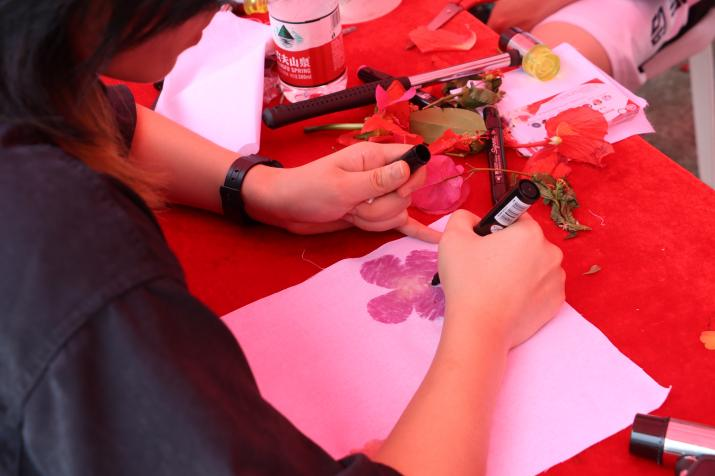 心理发展部参与协办校“5·25心理健康嘉年华”铜盘校区系列活动,开展“拓印植物的美丽”植物拓染活动。