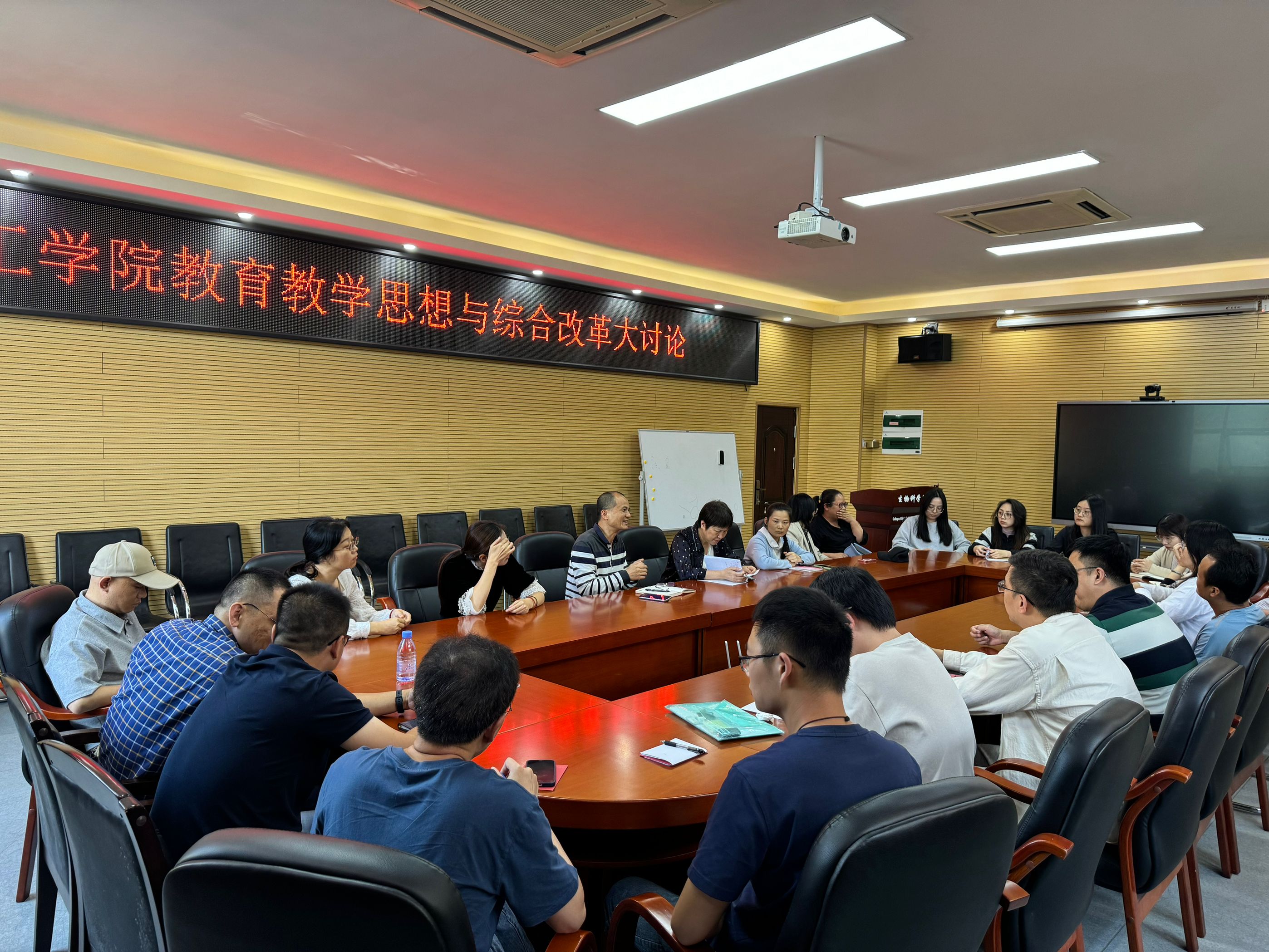 与会人员围绕着教学科研比重、教研教改项目申报、教学竞赛组织与教材编著等工作召开讨论,从不同的方面,提出可行性的参考建议,在绩效评价方面,与会者建议增加教改项目、教改论文、教材出版、教学竞赛奖项等教学业绩的绩效分值,从而激发教师投身教育教学的热情。