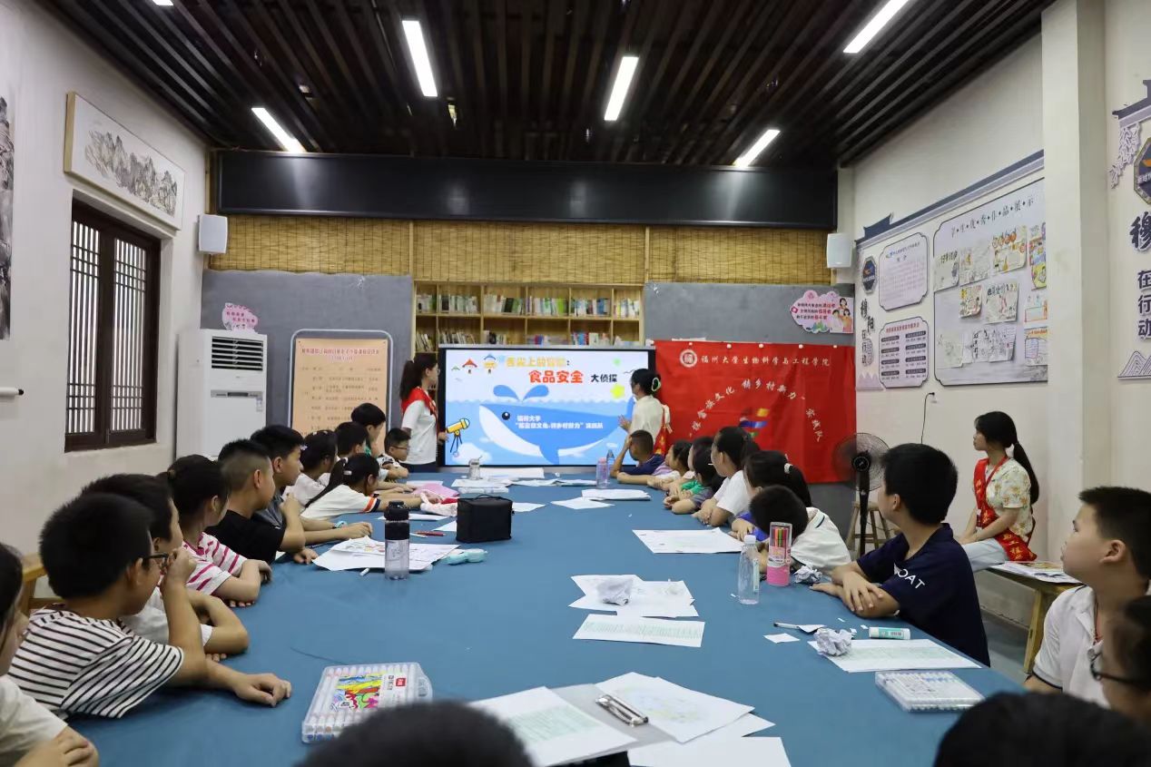 7月11日下午,实践队来到穆阳镇仰止祠宏文书屋,以“舌尖上的冒险:食品安全大侦探”为课题,为第二届“育萌芽“夏令营的孩子们开展了一场食品健康与安全科普课程。此次支教活动围绕“包装上的小秘密”、“食品添加剂的真面目”、“‘侦探任务’实践”、“营养金字塔”四大主题展开,由四位队员负责教学。课堂上,小朋友们积极参与,踊跃回答,展现出对知识的渴望。