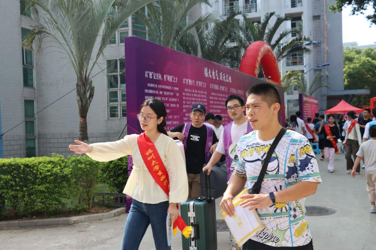 在旗山校区,8月31日,研究生志愿者们高效布置了迎新点和绿色通道,为提前返校的研究生新生提前提供顺畅的报到服务,为他们顺利入学之路保驾护航。