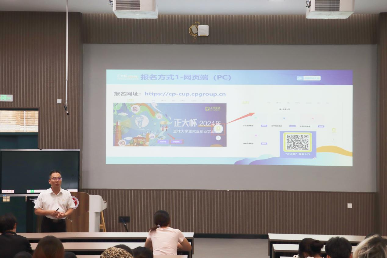 同学积极参与专业竞赛,提升生工学子在互联网时代的创新创业能力,10月17日正大杯2024年全球大学生就业创业实战大赛宣讲会旗山校区东二-100顺利举行,全体2023级本科生及2024级食品科学与工程研究生参会。