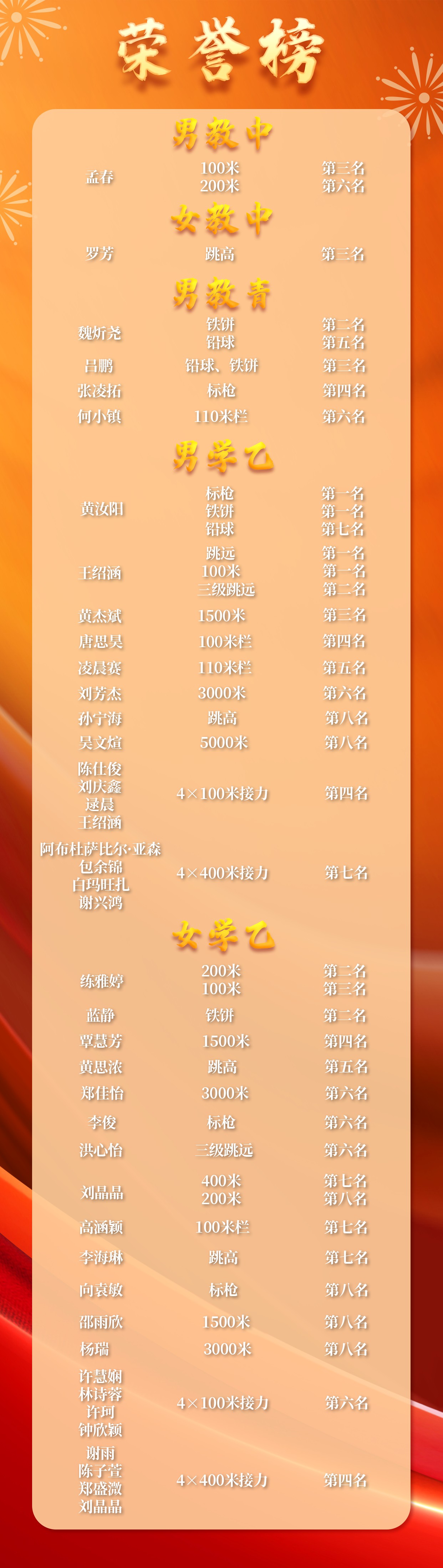 荣获“体育道德风尚奖”,并取得了男子学生乙组团体总分第五名、女子学生乙组团体总分第五名、男子教师青年组团体总分第五名的优异成绩!