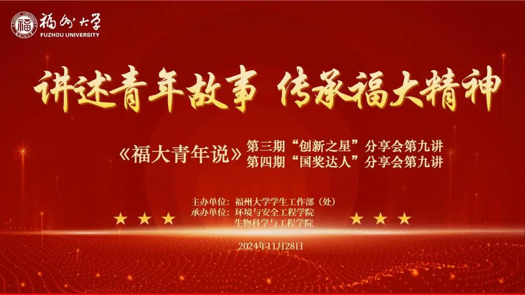 联合承办的《福大青年说》第三期“创新之星”、第四期“国奖达人”分享会在晋江楼一楼报告厅顺利举办。