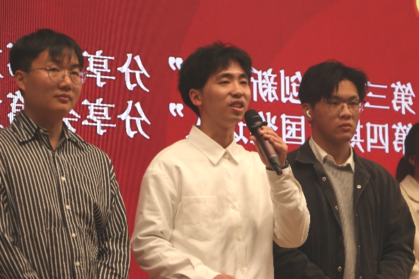 接下来是创新代表们通过介绍自身在创新大赛中的获奖项目,分享创业故事讲述自身科研经历,鼓励在座的同学实干创新,砥砺青春。