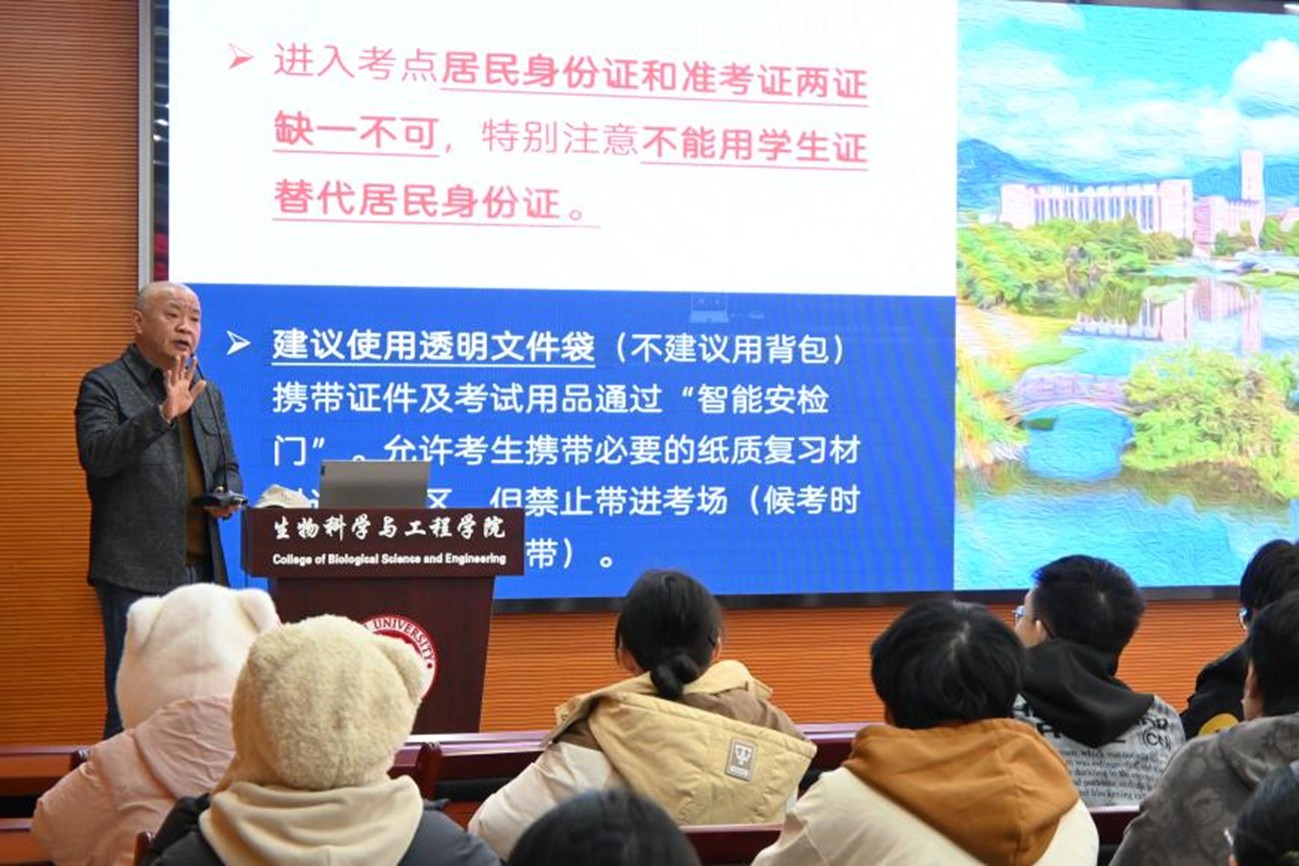 曹仁秋副书记围绕“历年研考中的违规事例”、“严肃考风考纪”、“考试注意事项”三个重点内容展开讲解,深入分析了历年研考中违例事件的表现和后果,重点强调了遵守考场规则、诚信考试的重要性,提醒同学们务必提前备好身份证、准考证等相关材料和考试用具,仔细确认考试时间与地点,提前到达考场。并为同学们讲解研究生考试入场流程、考前饮食与作息以及如何处理考试中的突发情况等。最后,他预祝全体考研学子“一研为定!”“成功上岸!”。