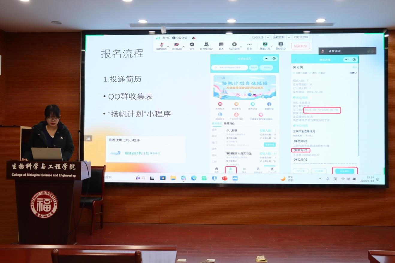 宣讲会上,吴锴澜同学详细介绍了“扬帆计划”的报名流程,分享了自己在实习过程中的经历和收获。他提到,通过参与“扬帆计划”,不仅能够接触到实际的工作环境,还能够结交到许多志同道合的朋友,拓宽自己的视野和人脉。