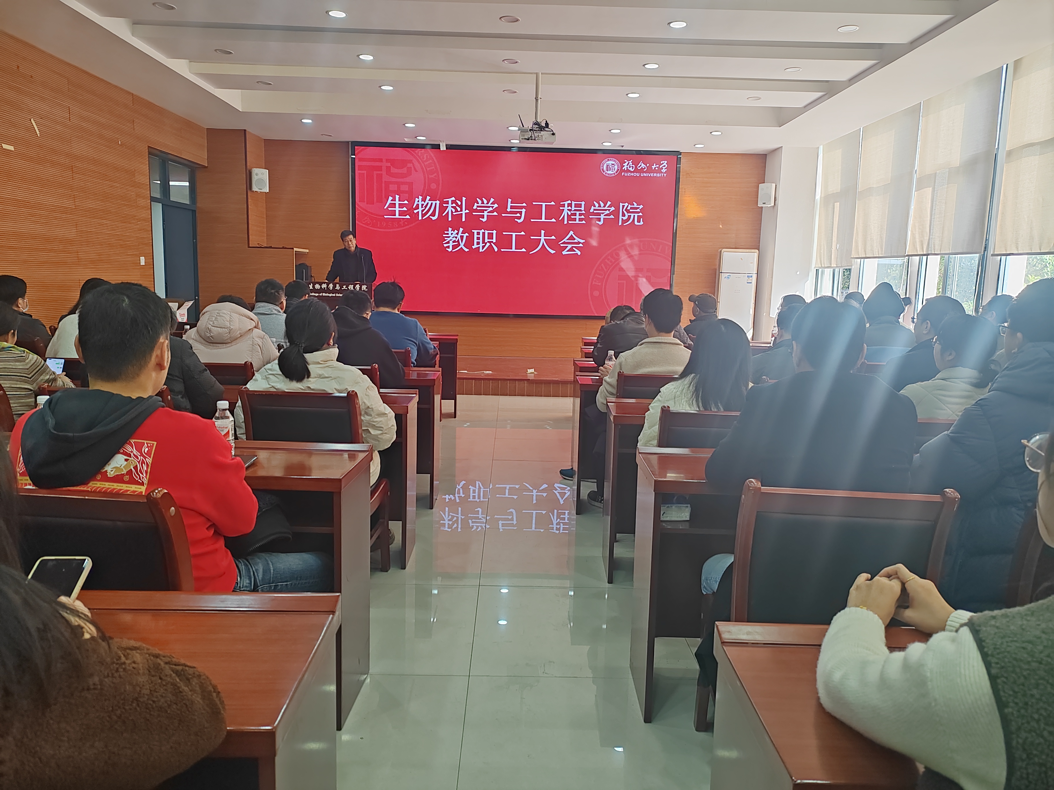 在柏物产厅会议室召开了期末全院教工大会。会议由院党委书记李礼建主持,全体教职工参加了此次会议。