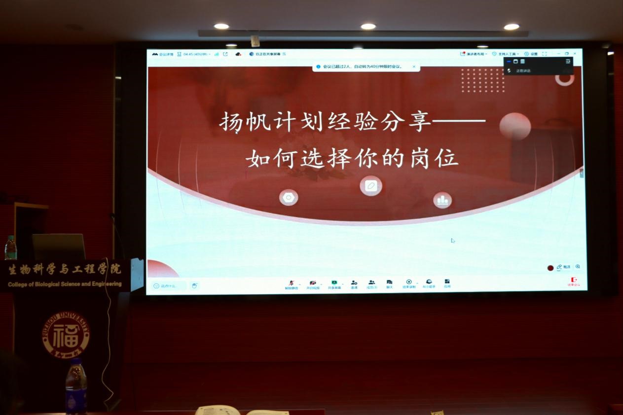 团委在生工北楼柏物产厅举行了“2025寒假‘扬帆计划’经验分享会”。学院四位参与2025年寒假“扬帆计划”的同学作为分享者,围绕岗位经验和实践心得展开分享。