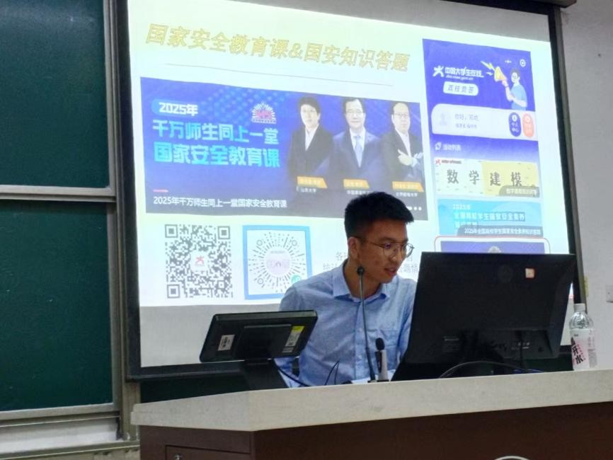 最后,全体师生共同观看国家安全教育专题片《千万师生同上一堂国家安全教育课》。该片以情景模拟形式重现社交媒体风险真实案例,引导师生树牢底线思维,践行科研数据保护、信息规范传播等责任,为筑牢国家安全青年防线提供实践指引。