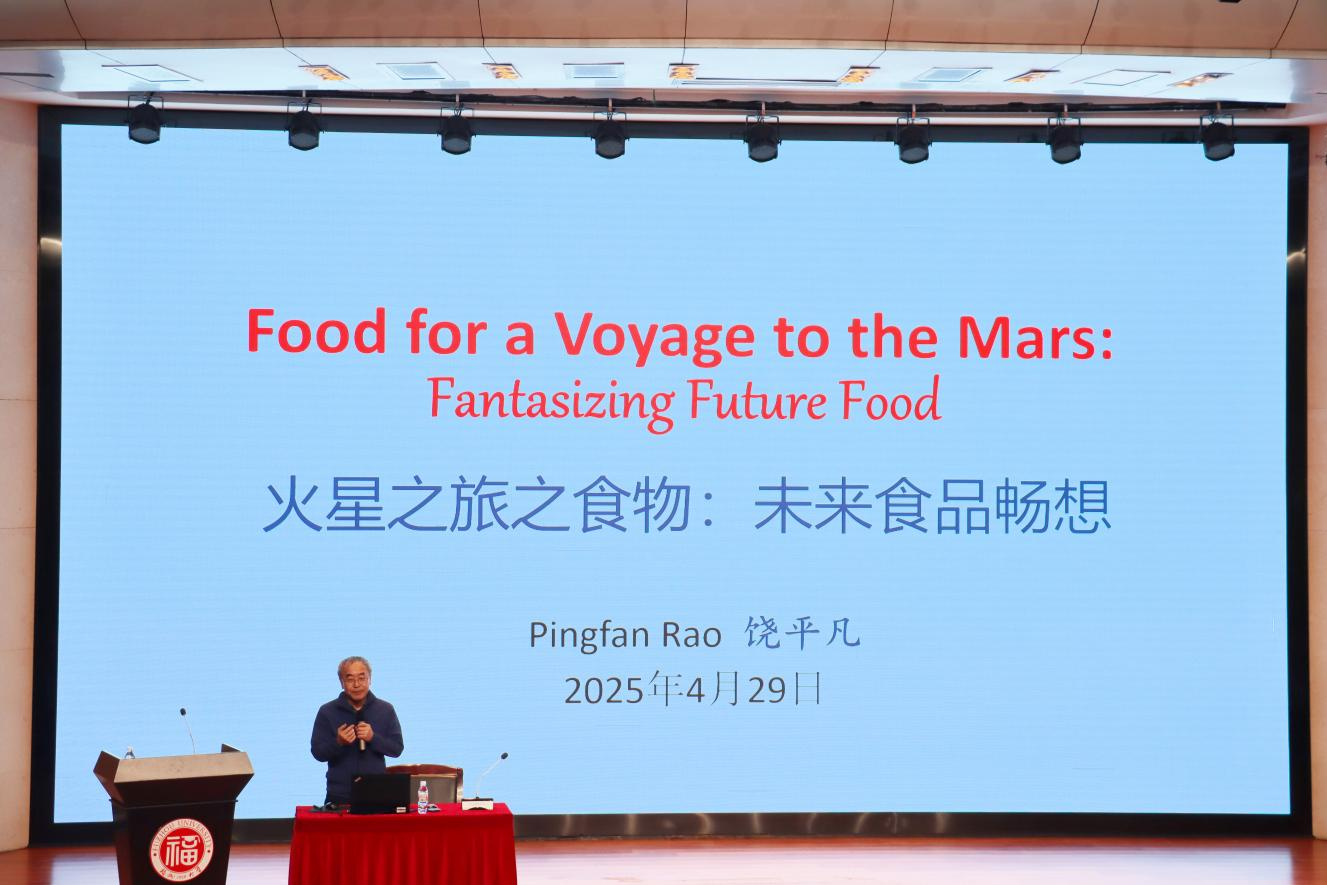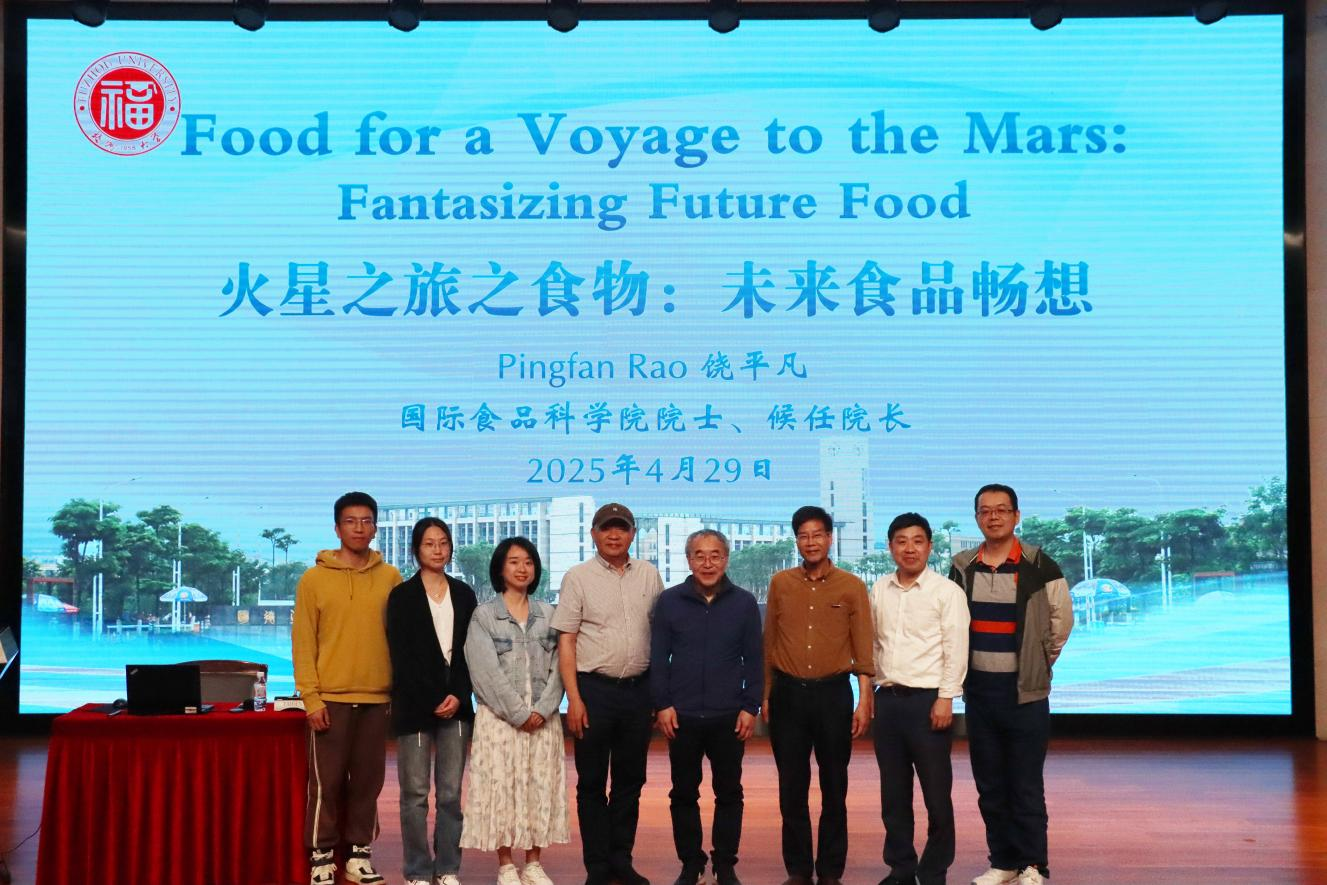 2025年4月29日晚20:30,国际食品科学院院士饶平凡教授应邀在旗山校区模拟法庭为学院师生作题为《火星之旅之食物:未来食品畅想》的学术报告。报告由院党委李礼建书记主持,院党委曹仁秋副书记、刘树滔教授、张晨教授和学院300余名师生参加讲座。