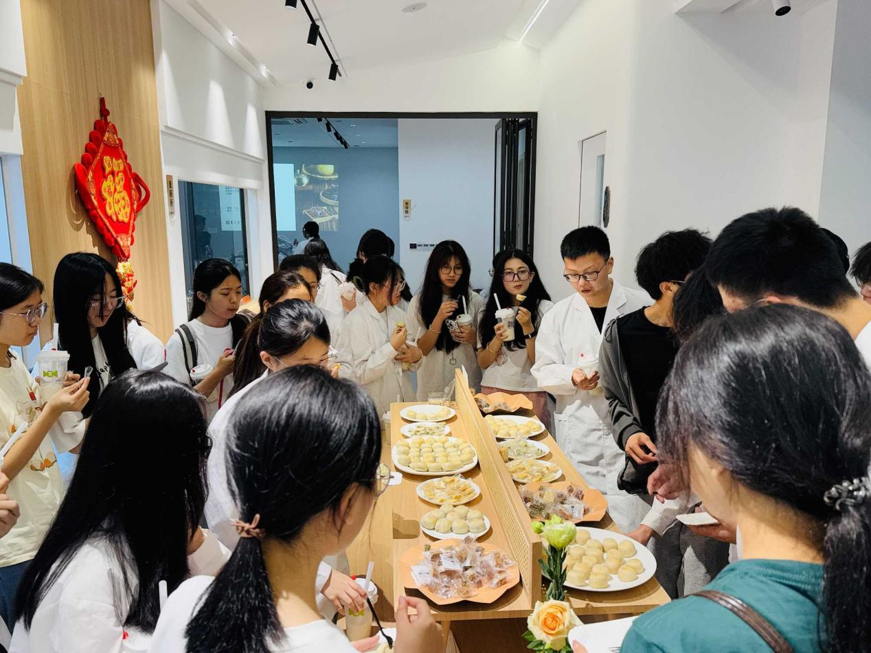 活动中,最让同学们兴奋的莫过于产品试吃环节。在麦壳里员工的引导下,同学们纷纷品尝了这些特色茶点,不仅享受到了美味,还通过线上问卷调研和交流互动,深入了解了产品的市场反馈和消费者需求。大家纷纷表示,通过亲身体验,更加了解了食品科学不仅仅是书本上的知识,更是与日常生活紧密相联的实践艺术。