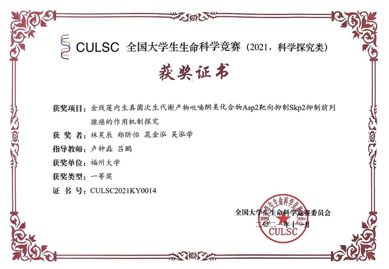 学生荣获2021年全国大学生生命科学竞赛一等奖