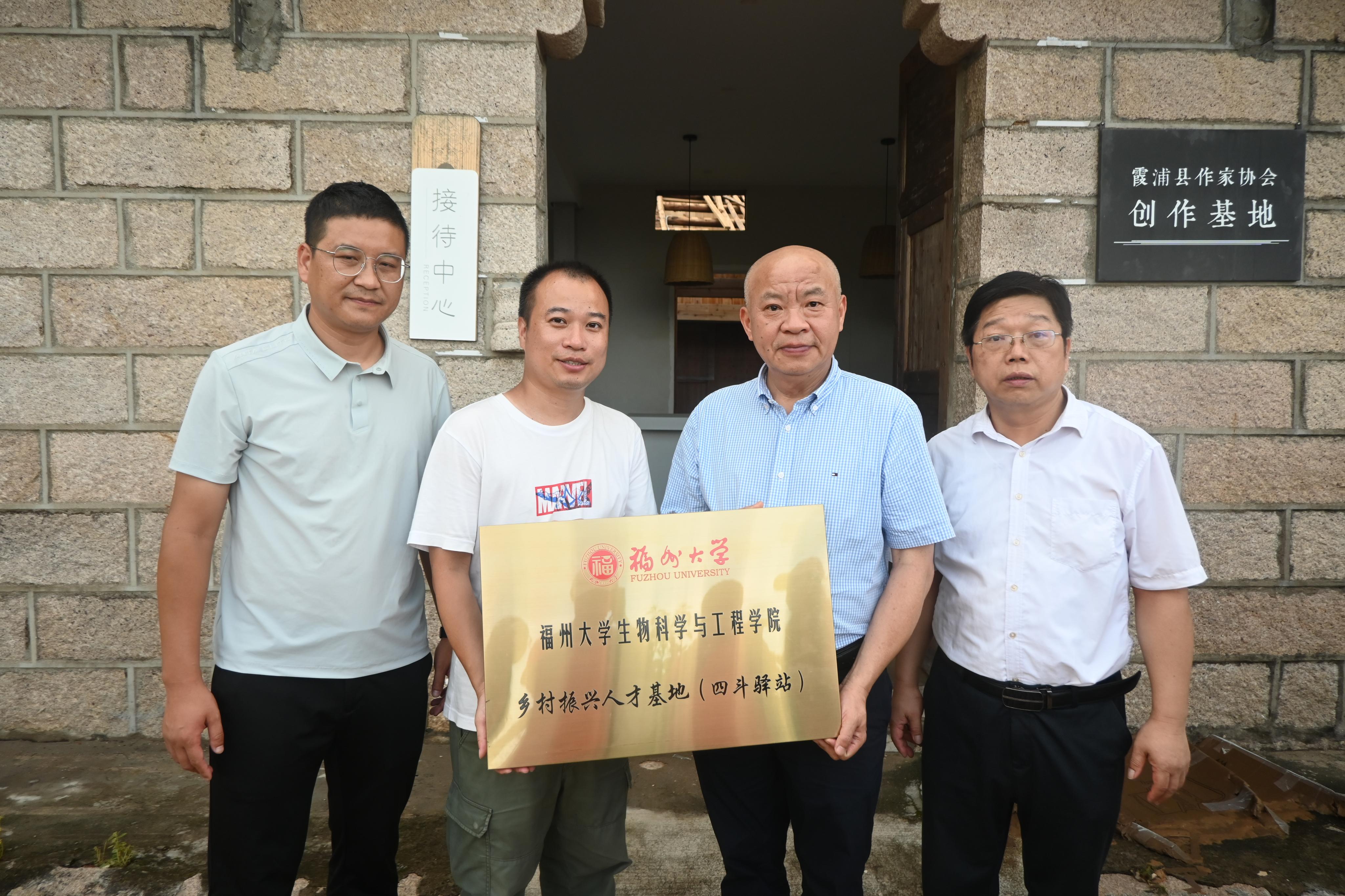 活动尾声,曹仁秋副书记与林向阳教授代表学院向即将落成的青年驿站四斗驿站颁授“乡村振兴人才基地”牌匾。乡村振兴离不开人才,人才存量、人才增量和人才培育是乡村振兴的核心动能,人才基地的设立旨在为四斗村输送培育更多优秀的文化人才,为校地长效合作搭建起新平台。