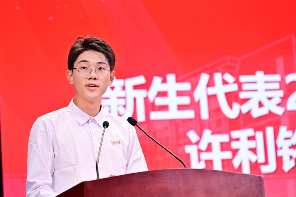 2025级本科生新生代表许利铭同学在发言中,以热忱饱满的分享回顾入学以来的成长蜕变,深刻诠释“选择福大就是选择奋斗”的信念。他表示,未来将深耕专业学识,充分利用学院提供的成长平台锤炼本领,肩负“守护人民生命健康”的时代使命,与全体新生携手书写属于生工学子的崭新故事。