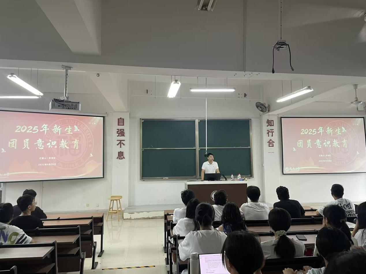 团委副书记张凌拓在铜盘校区B315教室为全体新生讲授团员意识教育课,助力新生筑牢信仰根基、规划大学生活。