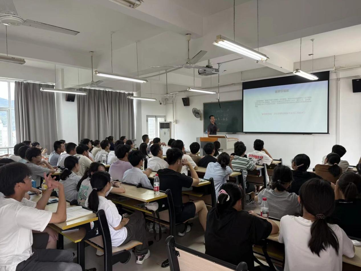 生物医学工程专业班主任何小镇老师以“生老病死里的工程智慧”为题,从生命全周期视角生动勾勒学科疆域。何老师分享自身求学经历,阐释专业交叉本质,介绍AI医学影像、手术机器人等前沿案例。他鼓励新生尽早培养专业兴趣,在科研道路上勇于探索,并承诺成为同学们的“引路人”,助力创意实现。