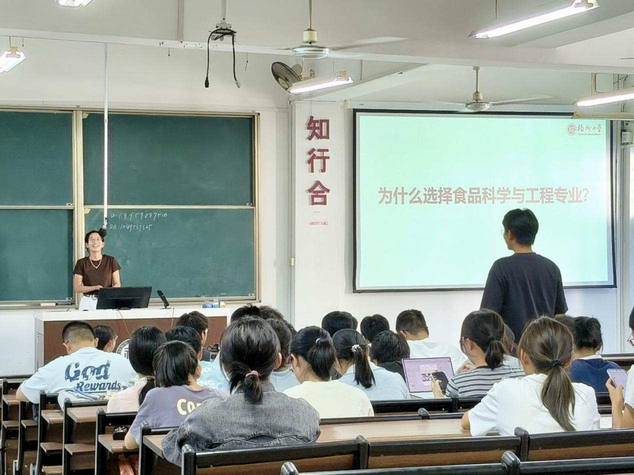 食品科学与工程专业班主任郑瑜雪老师从“为什么选择食品专业”出发,系统讲解专业内涵、学习意义、课程体系与职业方向。她强调食品行业关乎国计民生,是国家战略重要支撑,鼓励同学们通过“以赛代学、以产促教”提升实践能力,在关乎人民健康的“刚需”领域中实现价值。