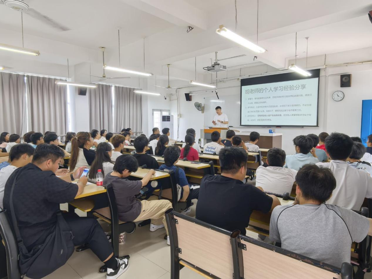 生物工程专业班主任胡桓老师以“明确当下,走向未来”为主题,从“我能学到什么”、“我为什么要学习”、“我该怎么办”三个核心问题切入,系统解析专业课程体系、能力要求与就业方向。胡老师特别指出“生命科学+AI=未来”的发展趋势,提出“自学+AI+导师引导”的学习路径,帮助新生在人工智能时代找准定位,增强学习内驱力。