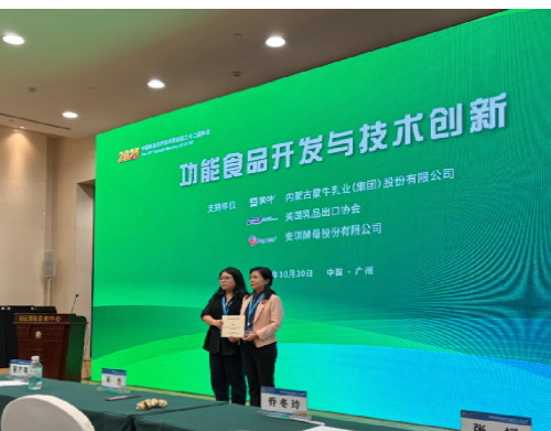 院长汪少芸教授和沈阳农业大学副校长李斌教授共同主持“功能食品开发与技术创新”年会技术专题。在此专题会议上,蔡茜茜副教授受邀作了“鱼源钙螯合肽靶向挖掘及调节骨稳态作用机制研究”报告。该研究聚焦食品来源的钙螯合肽这一生物功能成分,创新性地通过计算机辅助数学模型和生物信息学技术,精准挖掘鱼源钙螯合肽,为解决传统钙补充剂吸收率低的世界性难题提供了新思路。