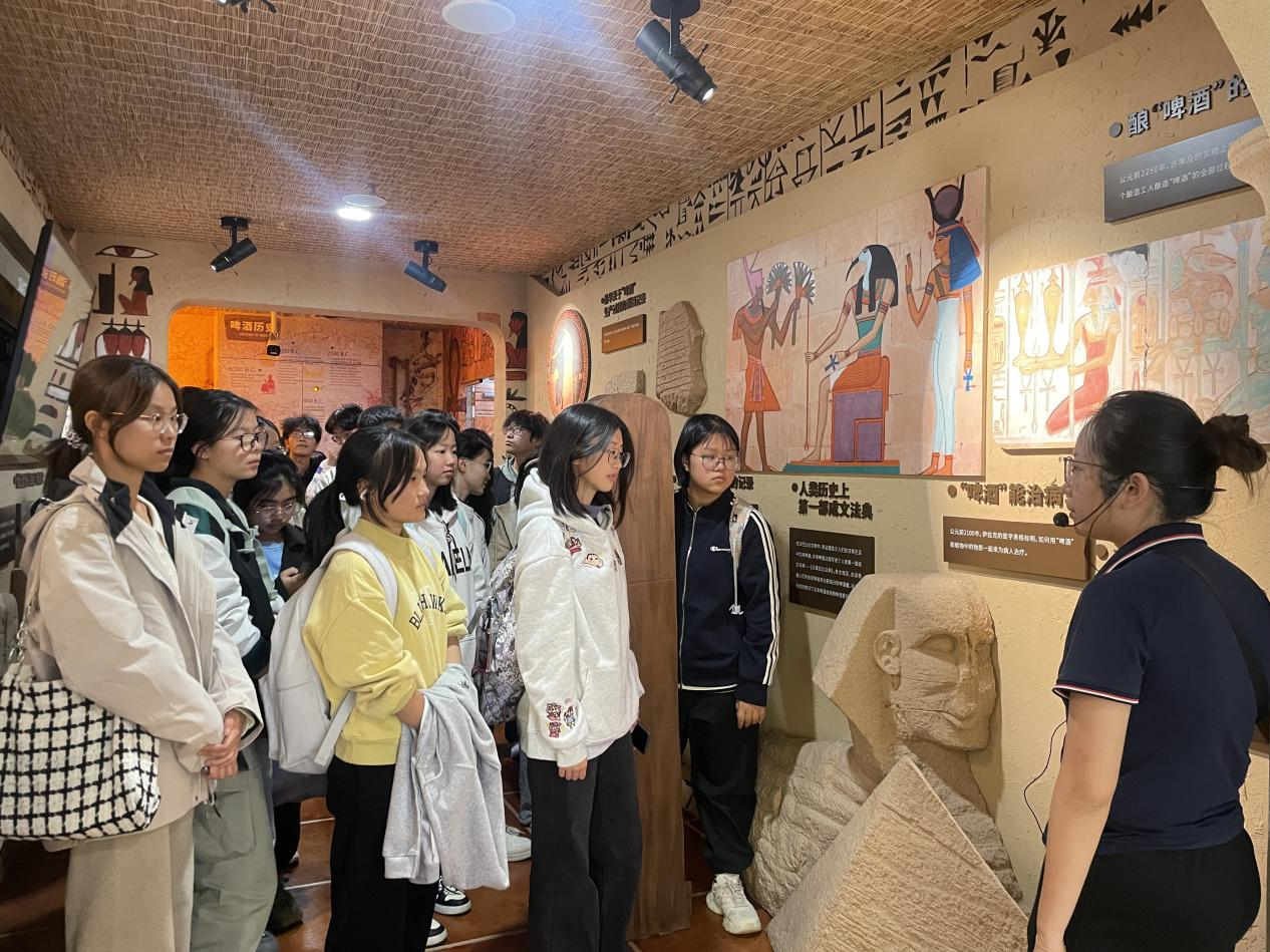 (学院师生在讲解员的介绍下了解啤酒酿造历史)
