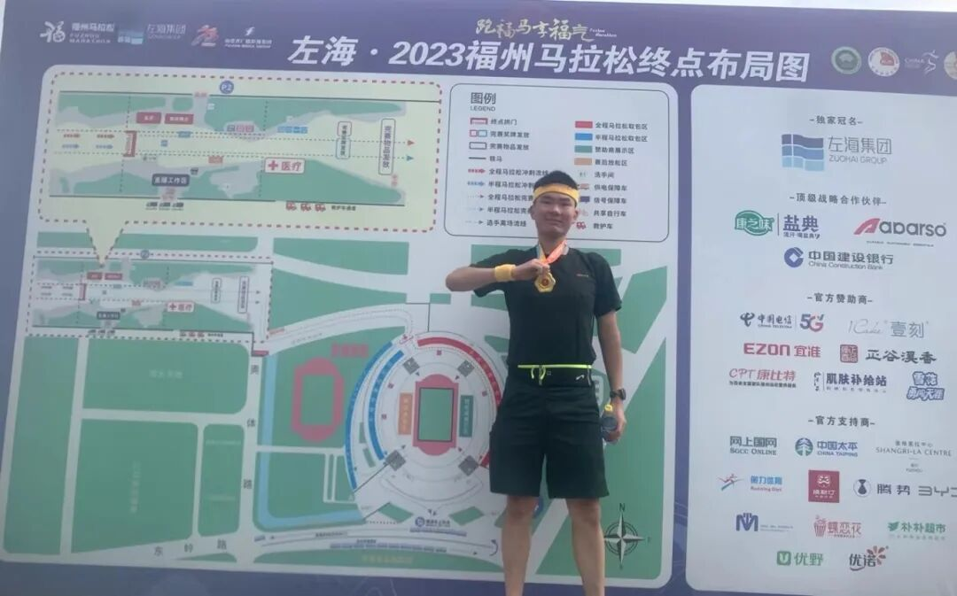 在2023年福州马拉松的终点线前,他手持奖牌,脸上洋溢着自信的笑容——42.195公里的赛道,他用双脚丈量,用汗水征服。强健的体魄不仅支撑着他的科研与学习,更为他持续献血打下了坚实的身体基础。