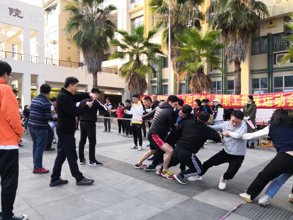 1月9日下午,爱爱视频 2020年“迎新年”教职工趣味运动会在嘉锡广场顺利举办。全院教职工欢聚一堂,其乐融融,分成四组展开了激烈又充满趣味的角逐。院工会主席张志雄老师担任本次趣味运动会的现场主持人。