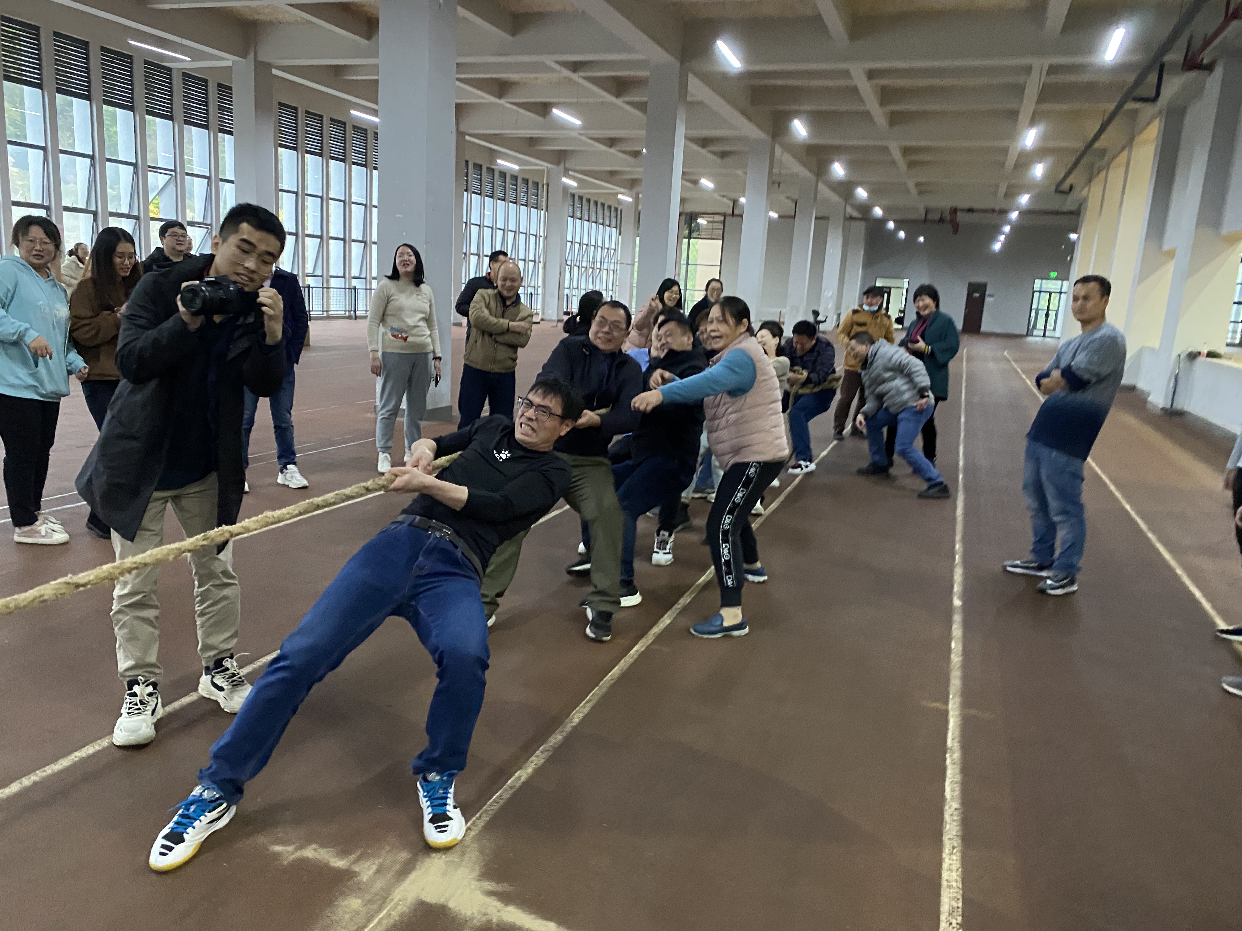 学院106个教职员工分成四个工会小组参与角逐,活动共设马达电臀、团结舞台、跳绳比赛、提绳踏板、众星捧月、趣味拔河等六个项目,各项目融趣味性、娱乐性、健身性为一体,充分体现了“众志成城 趣味健身”的活动主题,展现了学院教职工的集体合作意识与团队精神。赛前,各工会小组做了广泛的动员和精心的准备,比赛过程中,各代表队选手激情饱满、团结协作、全力以赴,比赛现场掌声、欢呼声和呐喊声此起彼伏、热闹非凡,比赛过程充满了紧张而欢快的气氛。
