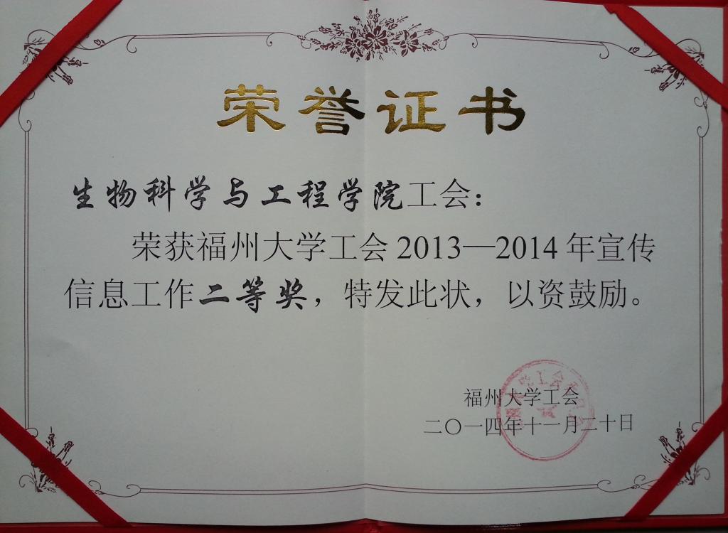 祝贺爱爱视频 工会荣获爱爱视频 工会2013-2014年宣传信息工作二等奖